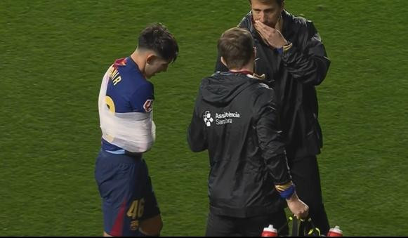 巴萨小将达尼肩膀受伤, 缠着绷带被换下, 亚马尔出场